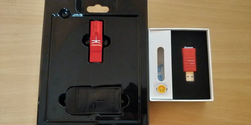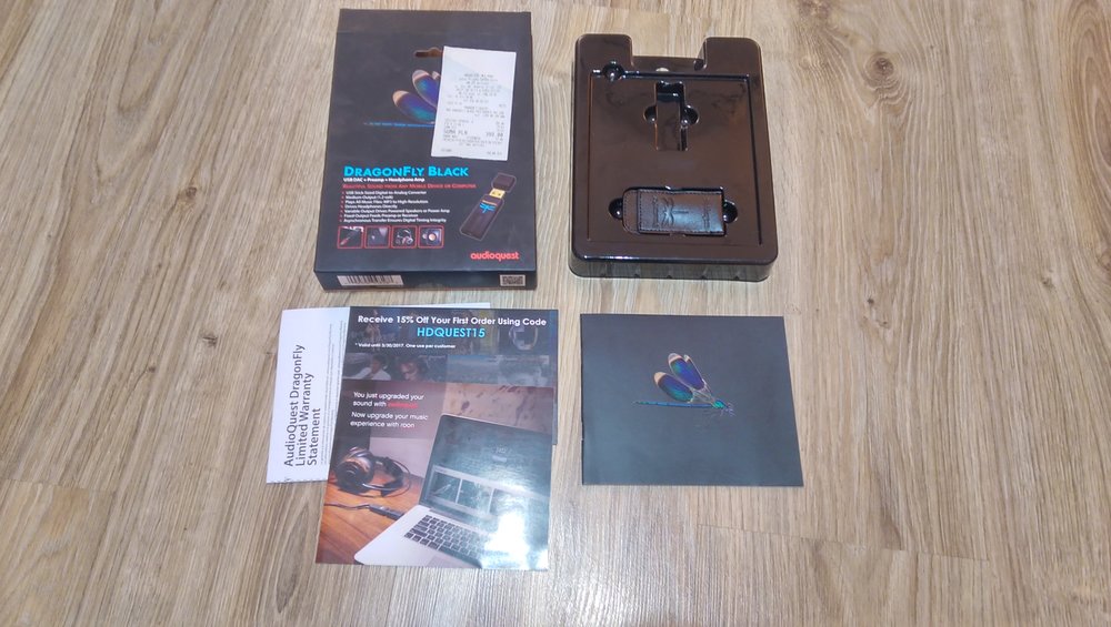 Na początek mała uwaga: Sprzęt zakupiłem na własny użytek ze sklepu TOP-HiFi, ponieważ nie mam sponsora, a nawet gdybym go kiedyś miał, to bardzo chciałbym, żeby nie miało to wpływu na to co tutaj piszę. W końcu recenzja to subiektywizm, czyż nie? Zabierałem się do pisania niniejszego tekstu jak do głaskania jeża… Ciężko było, choć Audioquest reprezentuje wysoki poziom w segmencie tzw. mikroDAC-ów. Chcę jak najdokładniej opisać wrażenia jakie miałem przez ostatnie dwa tygodnie obcowania z Czarną Ważką (ta nazwa będzie się przewijała przez resztę tekstu). A są one bardziej niż pozytywne. Muszę powiedzieć, że jest to mój pierwszy DAC, więc proszę byście do wszystkich opisanych tutaj wrażeń i spostrzeżeń podchodzili z lekkim dystansem. Bez dalszych zbędnych słów zapraszam do recenzji! WYKONANIE/DESIGN/CO W PUDEŁKU Sprzęt przychodzi do nas w bardzo ładnym pudełku, które zdradza, że mamy do czynienia ze sprzętem naprawdę dobrej jakości. Samo opakowanie jest wykończone na matową czerń, podobnie jak samo urządzenie. W zestawie otrzymujemy oczywiście naszego DACa, zgrabne i dobrze wykonane etui ze skóry (zapewne tej eko, a nie pochodzenia zwierzęcego) oraz instrukcję obsługi. Ważka ma wymiary standardowego pendrive’a i jest wykonana wzorowo. Biorąc urządzenie do ręki zdecydowanie czuć, że kupiliśmy produkt premium. Nic nie trzeszczy, całość wykonano z metalu poza zatyczką portu USB, która jest plastikowa, ale jej wykonaniu też nie można nic zarzucić. Na plus również to, że po wsunięciu do końca ciasno trzyma się portu. Podobnie ma się rzecz z gniazdem jack 3.5mm – jest wpasowane absolutnie perfekcyjnie w urządzenie i przy podłączaniu/odłączaniu słuchawek nie mamy wrażenia tandety. Stawia przyjemny opór, taki w sam żeby nic się samo nie odłączyło przez przypadek. Podsumowując wykonanie – czarny Dragonfly jest zbudowany tak, jakby miał przeżyć zderzenie z czołgiem i w dodatku pięknie świeci jego logo. Niepalcująca się obudowa na ogromny plus. POŁĄCZENIE Z URZĄDZENIAMI Myślę, że warto poświęcić temu aspektowi oddzielny akapit. Dragonfly Black według zapewnien producenta powinien bez problemu działać na komputerach z systemami Windows, macOS oraz Linux, a także z urządzeniami mobilnymi działającymi na iOSie oraz Androidzie (od 4.0 w górę). Wszystko ładnie pięknie, ale mam parę zastrzeżeń. Z komputerem na Windowsie 10 Pro przetwornik działa bez problemu, bez instalacji niczego – podłączamy i działa. W moim przypadku gorzej było z Androidem. Posiadam Samsunga Galaxy S4 jako telefon na co dzień. Po zakupieniu stosownej przejściówki i podłączeniu Ważki dźwięk był nienaturalnie głośny i pełen takiego ‘cyfrowego pierdzenia’ (nie wiem jak to końca określić, w każdym razie trzeszczało). Poczytałem porady mądrych ludzi na Reddicie i okazało się, że Android jest kiepski jeśli chodzi o natywną obsługę dźwięku po USB. Problem rozwiązał się sam po zainstalowaniu aplikacji USB Audio Player (37zł). BRZMIENIE Zanim przejdę do opisu brzmienia warto nadmienić, że Dragonfly był przeze mnie testowany naprzemiennie wraz z laptopem Toshiba C660D i Samsungiem Galaxy S4. A więc tor w przypadku odsłuchów był następujący Toshiba C660D -> Dragonfly Black -> Sony MDR-7506 lub Galaxy S4 -> przejściówka USB OTG -> Dragonfly Black -> Sony MDR-7506 Kilku moich czytelników, którzy się orientują jakiego sprzętu używam pewnie zapytają: „Eeee… panie, a gdzie douszne słuchawki są?” Aktualizacja w sprawie świata dokanałowego jest taka, że swoje KZ ZST zgubiłem na mieście wraz z modułem Bluetooth, z kolei w VE Monk+ padł mi jeden kanał, bo byłem ciekaw co jest w środku. Tym sposobem zostały mi jedynie JBL’e T290, ale szkoda strzępić klawiatury na to… Podsumowując – sprzęt niestety testowałem z jedną parą słuchawek. A jak brzmi Ważka? Ło panie… dużo tu pisać. Na początek trzeba nadmienić, że charakter Black’a jest lekko ciepły, na pewno basowy, ale w granicach zdrowej ilości niskich tonów. DAC jest zupełnie cichy gdy nic przez niego nie przepływa, to na duży plusik Tak powinno być. Względem komputera jak i telefonu różnica w jakości to niebo a ziemia. Podstawą czarnej ważki jest dobra rozdzielczość i całkiem przyzwoita scena. Dźwięk nabiera przy nim soczystości jakiej wcześniej nie było, gdy puścimy sobie coś szybszego, albo gdzie separacja instrumentów dodaje dynamiki, to aż chce się tańczyć (ja testowałem na przykład płytkę „Jazz Samba” duetu Getz/Gilberto i rytmicznie sobie podskakiwałem przy niektórych utworach). Co brzmi wybitnie dobrze (według mnie) gdy przepuścimy muzykę przez Dragonfly’a? Na pewno ambient, ze względu na naprawdę świetną rozdzielczość. W dźwięku kiedy trzeba jest delikatność. Do czegoś bardziej basowego również będzie super (The xx brzmi rewelacyjnie). Najwięcej słucham elektroniki, jazzu i ambientu więc na tym polu mogę się najbardziej wypowiedzieć. Zrobiłem teraz trochę wyjątku i podczas testów było więcej starej muzyki rockowej. W bardziej akustycznych płytach gitara nabiera zupełnie nowego oblicza, a słuchałem „Joanne” Lady Gagi, który ma kilka utworów o akustycznym brzmieniu. Prezentacja gitar jest jasna i wyostrzona w zdrowym stopniu, przez co wszystko jest bardziej szczegółowe. Rozpłynąłem się dopiero przy dwóch innych albumach – „Dark Side of the Moon” Floydów oraz „Substrata” stworzony przez Biosphere. Ważka po prostu tam błyszczy i pokazuje 100 procent możliwości. Jak usiadłem do albumów, to już nie chciało mi się wstawać. To chyba najlepsza rekomendacja. Czy da się słuchać MP3 przez taki sprzęt? Owszem, za wyjątkiem próbkowania 128kb/s, o ile ktoś w ogóle słucha takiej kaszany Zakładam, że artykuł czytają osoby na nieco wyższym poziomie r