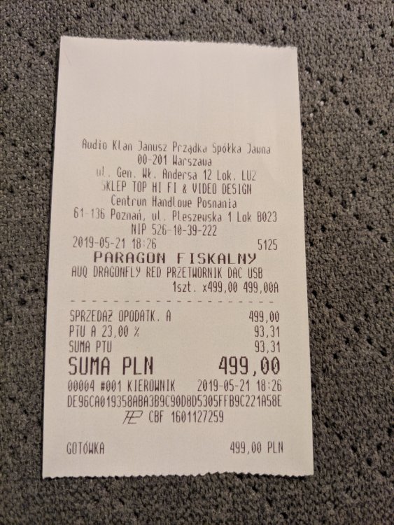 Witam. Na sprzedaż zakupiony 21-05-2019 w Top HiFi Audioquest DragonFly Red. Sprzęt w stanie idealnym, użyty dwa-trzy razy. Zakupiłem LG V30 i z już nie korzystam z DF Red. Przy przedpłacie wysyłka DPD w cenie - sprzedane Przy wysyłce za pobraniem tylko PP - sprzedane