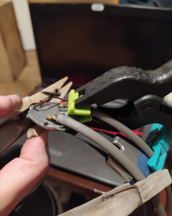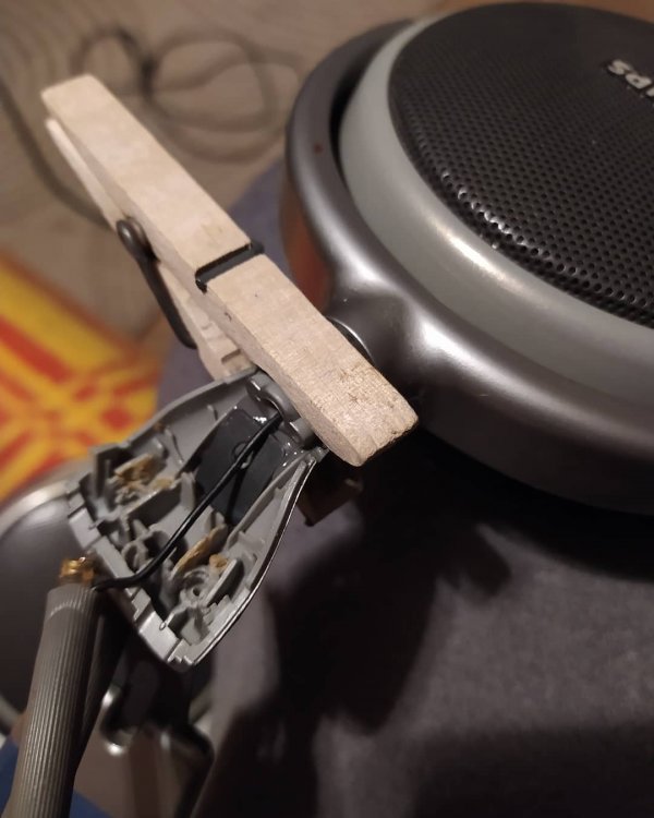 Przedmiotem naprawy są słuchawki taty, otwarte Pillipsy z 2003 roku. Grają w sposób, który może się podobać i można je polecic jako entry level do hi-fi Przypadłością tego modelu jest pałak z szajs-plastiku, który się łamie na potęgę. Ten pacjent byl owinięty grubą warstwą taśmy izolacyjnej 😛 Połówkę, którą się dało uratować zalałem doszczętnie 2 składnikowym JB Weld, a z drugiej strony to samo + zrobiłem rekonstrukcję kształtu z użyciem poxiliny. Trzyma się, nie łamie i zdaje egzamin. Słuchawki grają jak należy i są wygodne mimo unieruchomionego pivota, bo paski ze stali sprężynowej są wystarczająco elastyczne. Później szlif, polerka i czas na lakier! Całość pomalowałem niezawodnym Bollem do zderzaków plastikowych nadając słuchawkom prawie że massdropowy sznyt 😛 wisienką na torcie są wybite w aluminiowych tabliczkach znamionowych (pamiątce z poprzedniej pracy) oznaczenia "lewa, prawa"
