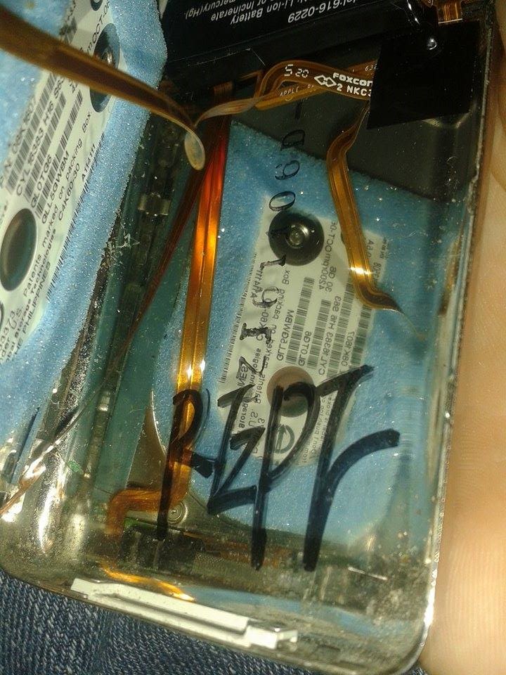 Padła mi bateria w ipodzie, więc otworzyłem go w celu rozebrania i zamówienia nowych części, ale od razu po otworzeniu w oczy rzucił mi się "autograf" napisany markerem. Może to jest stary ipod kogoś z Was albo ktoś go naprawiał i podpisał ?