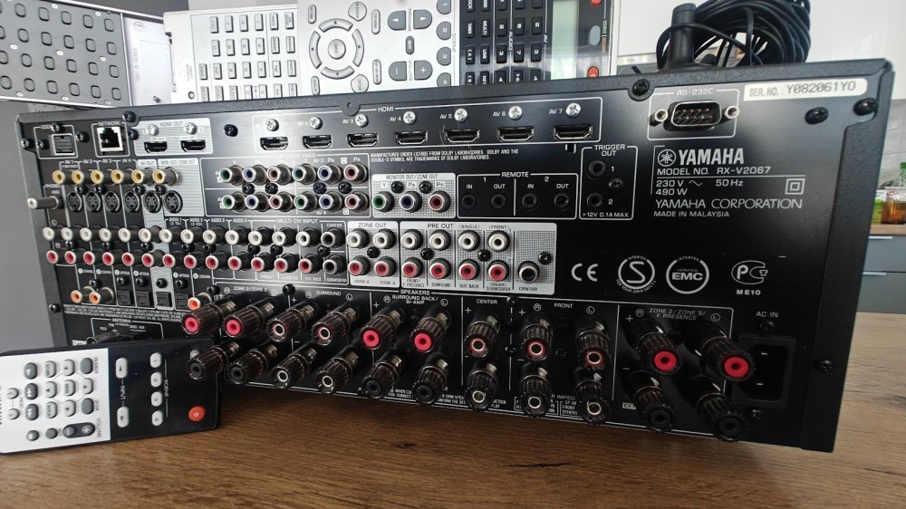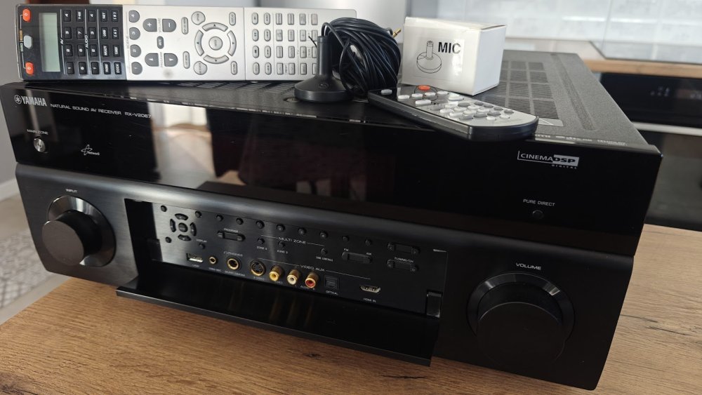 Sprzedam amplituner Yamaha RX-V 2067 stan bardzo dobry , nie otwierany wszystko działa 2 piloty + mikrofon do kalibracji. 7-kanałowy dźwięk przestrzenny (130 W x 7 RMS) Dekodery dźwięku HD: Dolby TrueHD oraz DTS-HD Master Audio; Dolby Digital Plus oraz DTS-HD High Resolution Audio. Dekodery dźwięku HD z CINEMA DSP 3D (17 programów DSP) Rozbudowany 9-kanałowy wzmacniacz bi-amping. Yamaha zaopatrzyła amplituner AV także w uniwersalne i proste w obsłudze nowe przyciski SCENE PLUS - jest ich aż 12!, optymalizację dźwięku YPAO - kontrolę dźwięku odbitego z wielopunktowym pomiarem akustyki dla automatycznego wyregulowania głośników, ekranowe menu GUI oraz nowe, zaawansowane funkcje sieciowe tj. obsługa radia internetowego (nadającego w formatach MP3/WMA), plików muzycznych przechowywanych na komputerze PC oraz na serwerze DLNA (WAV, MP3, WMA, AAC, FLAC 96/24) jak również kontrolę RX-V2067 za pośrednictwem przeglądarki komputera PC lub PDA. W promieniu 100km od Warszawy mogę dowieść. Możliwy odbiór osobisty lub zakup z przesyłką do uzgodnienia. Cena 1500 złotych