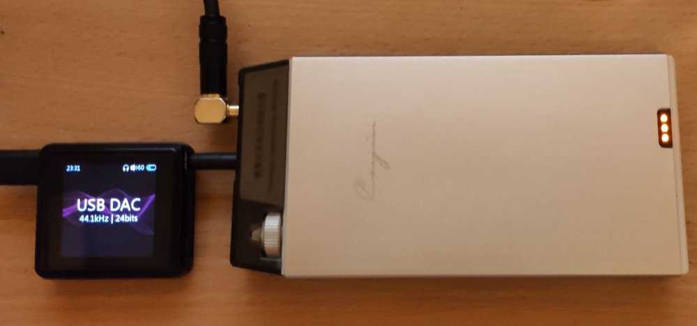 Po stu godzinach grania i sprawdzania funkcjonalności zapraszam na test: W roli głównej: Odtwarzacz: Fiio M5 Wkładka pamięci: Samsung evo 128GB Penetratorzy dziurki: Hifiman Sundara Kef Space One Wireless (po kablu oczywiście) Aune e1 Xiaomi mi in ear pro HD Xiaomi mi comfort CAL! Apple earpods Apple in-ear Creative aurvana in-ear Sony mh1c ( @espe0 cable mod) Mobilne DAC: Hegel Super m2tech hiface DAC Hifiman hm101 (muses 8832 mod) Mobilny AMP: Cayin C5 AMP Komputer: stacjonarny win10 tablet win10 (toshiba encore) na obu urządzeniach zainstalowany winyl player (wasapi) Konsola: ps4 slim telefon: Xiaomi mi 9T Utwory tidal/flac/mp3: Beats Antique - Roustabout The Seventh Sons - Secrets The Cadillac Three - Demolition Man Nicki Bluhm - To Rise You Gotta Fall Tami Neilson - Bananas Sugarland - On a Roll Montgomery Gentry - Shotgun Wedding Morgan Wallen - Little Rain The Dirty River Boys - Cheyenne Lumsk - Trolltind Rob Zombie - Teenage Nosferatu Pussy Rotting Christ - Cine Iubeste Si Lasa IXXI - Original Sin Marek Grechuta - W dzikie wino zaplątani Diablo Swing Orchestra - Climbing The Eyewall Rimski-Korsakov: Piano trio in C minor: Allegro Assai Bach: Violin Concerto No. 1 in A Minor, BWV 1041: II. Andante The Prodigy - Wall Of Death Yoshiko Kishino - Antonio's Song Pink - Hustle Istotne parametry: Fiio nie napisali czy jest dedykowany headamp więc zakładamy że jest to zintegrowany z AK4377 amp: Ground Referenced Class-G Stereo Headphone Amplifier - Output Power: 60mW (+2db) @ 16Ω (45mW dla 0db) - Output Noise Level: -128dBV - Analog Volume: +6 ~ -20dB & Mute, 2dB Step - Ground Loop Noise Canceling Dynamika 116 dB Opakowanie: W opakowaniu standardowo: DAP Fiio m5 Kabel usb C Makulatura Jedynie czego Kowalski mógłby się przyczepić to brak słuchawek i pamięci w zestawie - przecież to całe 449zł (oficjalnie) !!! Jak kupujemy AK 380 to nietaktem jest tam dać jakieś słuchawki ale tu ?! FH7 powinny być w zestawie - no dobra żart Dla początkujących użytkowników wypada napisać że do tak zacnego DAPa nie ma słuchawek (i pamięci - nawet wbudowanej) Funkcjonalność: Jako że mamy do dyspozycji olbrzymi wyświetlacz 1,54" sterowany gestami i całe 3 przyciski to po kilku dniach i tak się nie przyzwyczaimy do intuicyjnego menu. Niby wszystko jest przejrzyste i na dłoni, to w tej intuicyjności się gubimy bo jest intuicyjnie nieintuicyjnie. System jest niby prosto napisany a trzeba się palcem nawachlować żeby coś ustawić. Już nawet nie mówię że przy karcie 128GB ilość samych wykonawców jest tak spora że dojecać do litery "W" to znów trochę wachlowania (można dostać zakwasów opuszka) No ale spoko dla cierpliwych jest ok i nie będą narzekać. Ja mam adhdade i muszę mieć wszystko już! Funkcjonalność c.d.: Do M5 podłączymy DACa po usb C. Hegel Super, m2tech hiface DAC i hifiman hm101 nie zrobili na fiio żadnego wrażenia. Zagrały pełnym prądem i z pełną kulturą. Na samym odtwarzaczu można było sterować głośnością. BT i DAC na raz nie działają niestety (a fajnie by było). Jako DAC podłączymy urządzenie do PC z windowsem (trzeba sterownik), do Telefonu z androidem (nie potrzeba żadnych sterowników) i do PS4 (ale tu nie działa - można tylko ładować urządzenie) Pod windowsem dostępny jest pakiet Asio. W trybie DAC nie występuje żadne opóźnienie dźwięku, więc można filmy oglądać Nadawanie Bluetooth działa poprawnie, nie zrywa się lecz nie widać jakiego kodeka używa. Parowanie bez problemu ze wszystkimi dostępnymi zabawkami. Odbieranie Bluetooth działa nadzwyczaj dobrze i jest podpisany z jakiego kodeka urządzenie korzysta. Wyjście liniowe poprawnie wysterowuje wszystko do czego małego fiio podłączymy (od radia w samochodzie, AMPy i HiFi. Różnice między trybami w barwie/właściwościach sonicznych są znikome, aczkolwiek wprawione ucho wskaże że dźwięk najlepszej próby to ten z wbudowanego playera. Dźwięk: Na początku prosto z pudełka grał podbitym środkowym basem, trochę ciemno i wąsko. Jak sobie chlusnął setkę (godzin) to kocyk zszedł - choć podejrzewam że jeszcze dodatkowe 50h mogłoby mu zrobić dobrze. Póki co dźwięk otworzył się na granie neutralną średnicą , wibrującym basem i niezarysowaną lecz wyraźną górą (a już bałem się że się nie podniesie jak w cobalcie). M5 gra wąską sceną, trochę ściśniętą lecz w miarę dobrze napowietrzoną. Instrumenty starają się nie nachodzić na siebie i dźwięk we większych aranżacjach nie gubi się. Jest nawet trochę organiczne, ale czasami słychać tę cyfrową chrypkę czy kompresję w plikach stratnych. Zabieg wycięcia "nieistotnej" góry pewnie wyeliminował kompresję na górze ...i dobrze. Ogólnie jest bardzo kulturalnie z miłym tąpnięciem na dole. Fiio nie jest wybredny co do podłączonych słuchawek. Jasne, ciemne, ciepłe, czy zimne raczej zgrają się potęgując lub różnicując opisany przeze mnie wcześniej charakter - i robią to naprawdę bezpiecznie. Nie odczułem żeby któreś słuchawki jakoś szczególnie się nie dogadywały - jak za taką cenę jest naprawdę spoko i tu należą się brawa dla panów inżynieżów. Dźwięk jest tu jak najbardziej proporcjonalny do ceny. Na marginesie dodam że takie strojenie idealnie współgra ze słuchawkami ceramicznymi - czują się wtedy jak ryby w wodzie. Dźwięk c.d.: Bas trochę napompowany (podobny do tego z XB10 od astella). Potrafi miło schodzić w najniższe rejestry bez zbędnego buczenia. Nie jest to może szczyt selektywności czy wzorowej definicji, lecz w całokształcie dobrze spełnia powierzoną mu rolę. Barwa basu jest ocieplona a charakter szybki, skupiony na dynamice i tąpnięciach. Nie zachodzi bezczelnie na średnie tony. Średnica równa, bezpośrednia lecz nie zbyt bliska. Może delikatnie chropowata i ciupinkę eksponująca zakresy w których poruszają się np instrumenty dęte, dzwonki itp. Nie jest to jakie