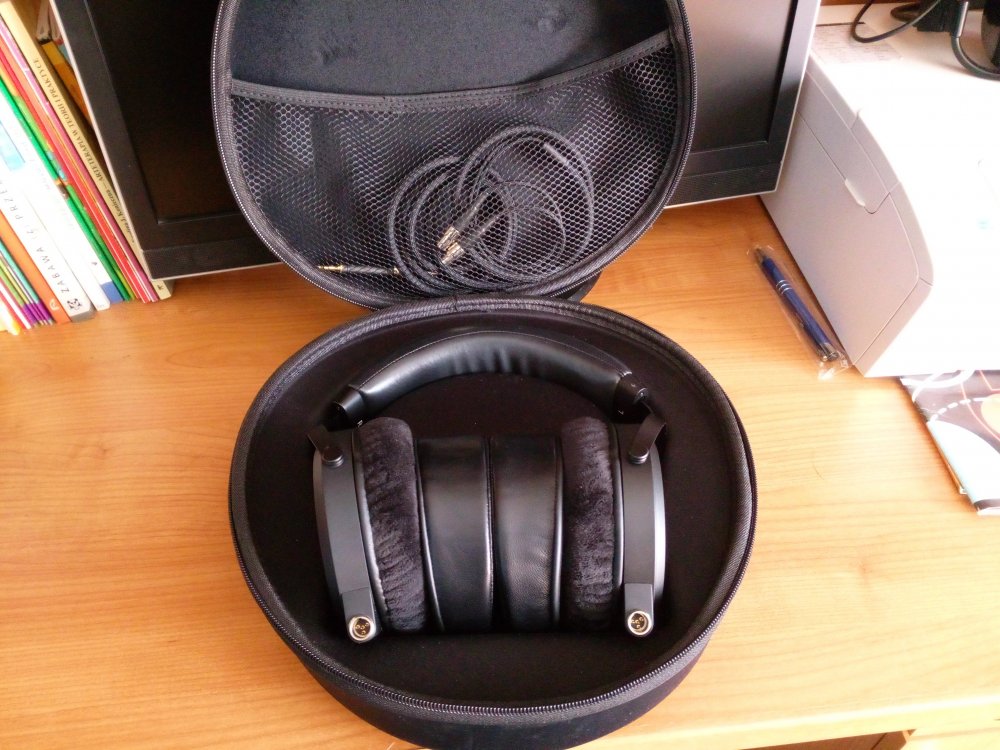 Monoprice Monolith M1570 - wizualnie w bardzo dobrym stanie, technicznie sprawne w 100% - grają pięknie. Defekt pałąka z lewej spodniej strony: normalnie niewidoczne ale przy zakładaniu na głowę coś tam delikatnie przeskakuje i robi się wybrzuszenie (na foto zaznaczone miejsce w którym to występuje). Po założeniu na głowę niewyczuwalne. Ja tak ich używam i nic mi nie przeszkadza, ale piszę żeby nie było nieporozumień Regulacja działa normalnie. W zestawie: słuchawki, zapasowa para padów skórkowych, kabel wraz z przejściówką 6,3 -> 3,5 mm oraz futerał na zamek. Cena w regularnej sprzedaży: 2549 Moja cena: $przedane Tak więc M1570 to są rzeczywiście słuchawki mogące konkurować z LCD-3. -- Hifiphilosophy