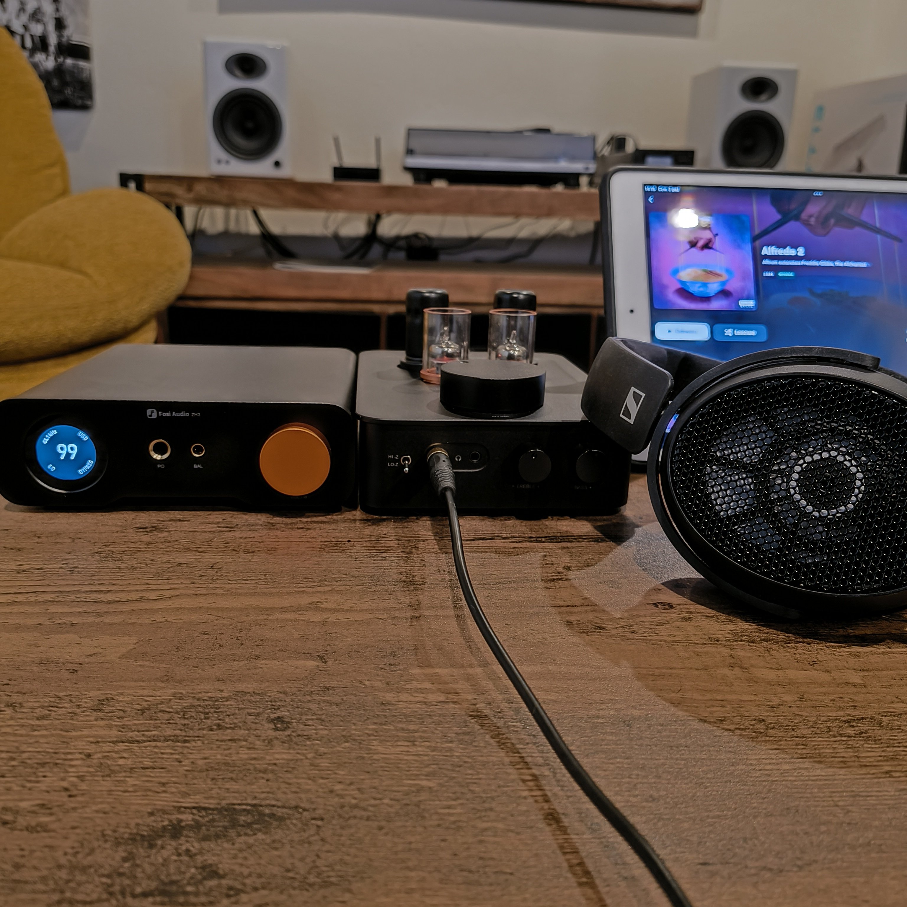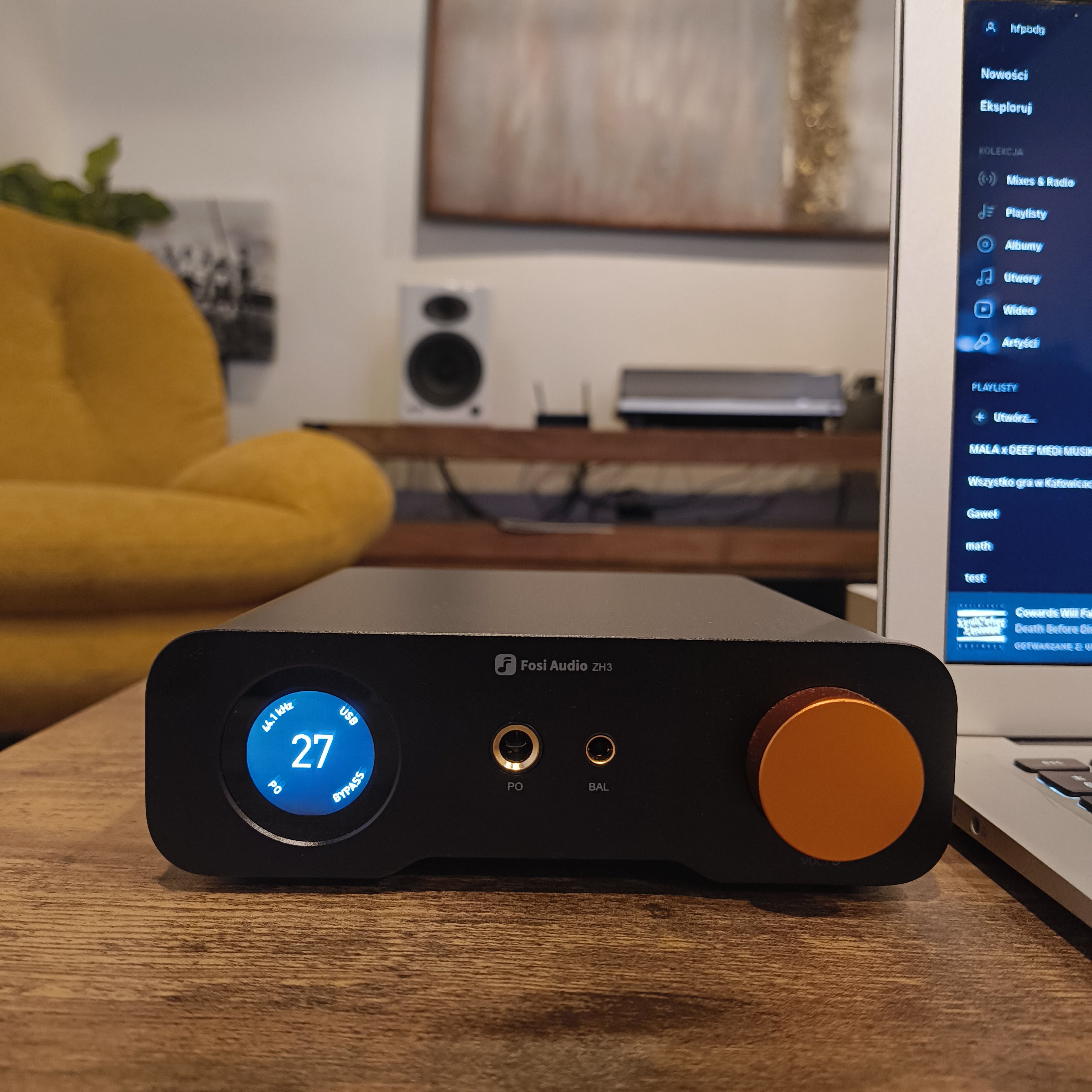 Fosi Audio ZH3 - DAC/AMP słuchawkowy przedpremierowo w Mp3store/HiFi-Pro Bydgoszcz. Fosi Audio ZH3 to wszechstronne, biurkowe centrum audio, łączące funkcje DAC‑a, wzmacniacza słuchawkowego i przedwzmacniacza. - Wyposażony w procesor USB XMOS XU316 oraz wysokiej klasy przetwornik cyfrowo‑analogowy AKM4493SEQ (niektóre źródła mówią o ESS ES9039Q2M) - Obsługuje sygnał wysokiej rozdzielczości: PCM do 32‑bit/768 kHz i DSD512 przez USB, oraz PCM 24‑bit/192 kHz przez optykę i coaxial. - Złącza i funkcjonalność: wejścia cyfrowe: USB‑C, optyczne, coax, analogowe RCA; wyjścia: słuchawkowe 4.4 i 6.35 mm, analogowe RCA, zbalansowane XLR; więcej info: https://fosiaudio.com/pages/zh3-dac-amp?srsltid=AfmBOorqp1GWP-EHlb31b4nMxtCO2mb0qOZn2jH_6Nau855ouWLxVzzy Zapraszam do odsłuchów