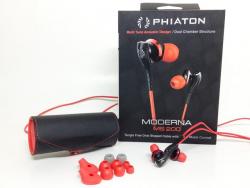 Phiaton MS200 Boldly-Designed Half-In-Ear Earphones Matched with Luxurious Audio Performance Wszystkie modele tego producenta są wpółdouszne. Co to oznacza? Są to słuchawki dokanałowe, gdzie przetwornik jest umieszczony poza uchem. Jest to skutek zastosowania przetwornika dynamicznego o średnicy 14.3mm. Pchełki nie mają tak dużych przetworników jak te dokanałówki (kolega PENDRAGON uświadomił mnie że jednak były tak duże i większe przetworniki montowane w pewnych modelach Panasonic). Dual Chamber for Rich Sound and Powerful Bass This striking new addition to the Phiaton line sets a new standard for audio performance of “in-ear” earphones offering powerful bass response and crystal clear sound. The Moderna earphones feature a “Multi-Tune Acoustic Design” with a dual-chamber and 5 tuning points engineered to accelerate airflow. The result is luxurious audio performance with crystal clear sound, rich detail and clean, powerful bass. In addition, its’ double-shelled body helps to contain sound and minimizes reverberation Cresyn w dużo tańszych C500E i C510E też stosuje to rozwiązanie. Jestem˛ciekawy jak to wyszło w znacznie droższej konstrukcji. Ale, jest jeszcze “Multi-Tune Acoustic Design” z "5 tuning points". Za pewne chodzi się o zmienny rozmiar bass reflex'u. Albo filtry akustyczne. Red-Hot Carbon Graphite Fiber Design The Moderna earphones were designed to provide the ultimate in durability, style and convenience. A signature of Phiaton’s line, known for its bold styling, the Moderna’s opulent red and black design offers a bold look and its lightweight, genuine carbon graphite fiber body offers added durability and a modern aesthetic appeal. Wygląd. Jaki jest, każdy widzi. Mi się podoba stylistyka Phiatonów. The New “Multi-Tune Acoustic Design” Phiaton’s new “Multi-Tune Acoustic Design” allowed Phiaton sound engineers to combine the excellent bass response of in-ear style buds with the crystal clear high frequency response of open-ear style earphones. Furthermore, Phiaton’s Moderna earphones achieve crystal clear sound quality and powerful bass with its 5 tuning points and dual chamber structure engineered to optimize airflow. Patrz: "Dual Chamber for Rich Sound and Powerful Bass". Tangle Free Oval Shaped cable with Microphone For the ultimate convenience, the Moderna earphones’ tangle-free oval shaped cable includes a built-in microphone for easy use while you’re on-the-go. Users can easily listen to the person at the other end of the call through their earphones, ensuring that you never need to remove them when you receive a call. These earphones can be stylishly stowed in a matching black and red leather carrying case. Kabelek w starszych PS210 robi bardzo dobre wrażenie. Jak będzie na takim samym poziomie, to nie ma do czego się przyczepiać. Hours of Comfortable Listening, 6 Sets of Eartips The Moderna Earphones unique and ergonomic “half in-ear” design allows users to comfortably wear their earphones for hours on end. These earphones come with four separate sizes of soft silicon tips to ensure a natural feel and a welcome “no slip” fit. The Moderna Earphones also include Comply™ Foam Tips for the best, comfortable listening experience as well as patented RightFit™ silicon ear tips that deliver an ergonomic, stable fit that’s perfect for exercising. Jeśli będą grać podobnie do PS210, to sugeruję montować Comply. Bardzo ładnie powinno wyciągnąć bas z nich.. Specifications: High quality dynamic speakers Frequency range: 10 Hz ~ 27,000 Hz Impedance: 32 Ohm THD: Less than 1% at 1 kHz Sensitivity: 100dB at 1 kHz Maximum input power: 30 mW Weight: 5.6 g (without cord) / 0.012 lb (without cord) Cord Length: 3.93 ft / 1.2 m What's in the Box: MODERNA MS 200 Earphones 4 sizes of silicon ear tips (XS, S, M, L) RightFit™ Silicone ear tips Comply™ Foam tips Carrying case Quick guide Warranty Card