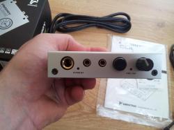 Witam, mam do sprzedania zewnętrzną kartę dźwiękową (USB DAC) ze wzmacniaczem słuchawkowym renomowanej, koreańskiej firmy AUDIOTRAK. Została zakupiona 03.01.2014 w crann.pl. Wymieniłem OPAMP na MUSES 8820 z którym gra świetnie (miałem okazję słuchać AKG K99, AKG K242HD, dźwięk miodzio, cieplutki, oryginalny OPAMP OPA2134 miał dosyć agresywną górę, za którą nie przepadam...). Cena: 310 zł na stock OPA2134, 360 zł z MUSES 8820 (przesyłka gratis, do wyboru Paczkomaty24 i paczka Poczty Polskiej). Ważna informacja: dla bezpieczeństwa i spokoju kupujących mam możliwość wystawienia towaru na allegro.pl (na koncie o nieposzlakowanej opinii).