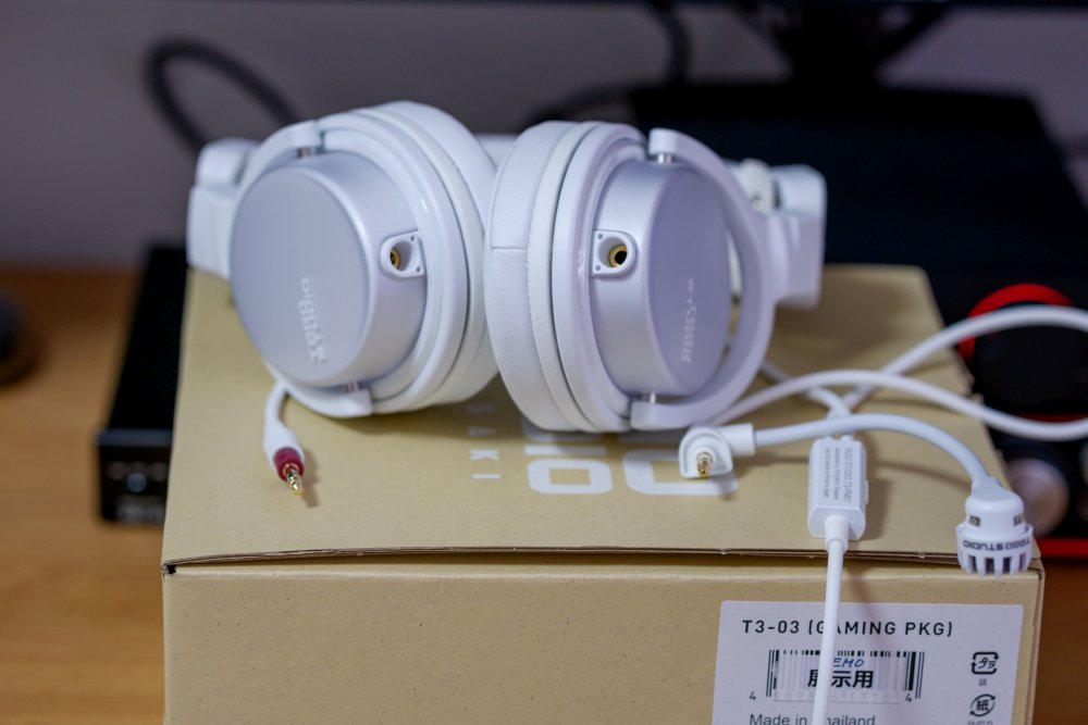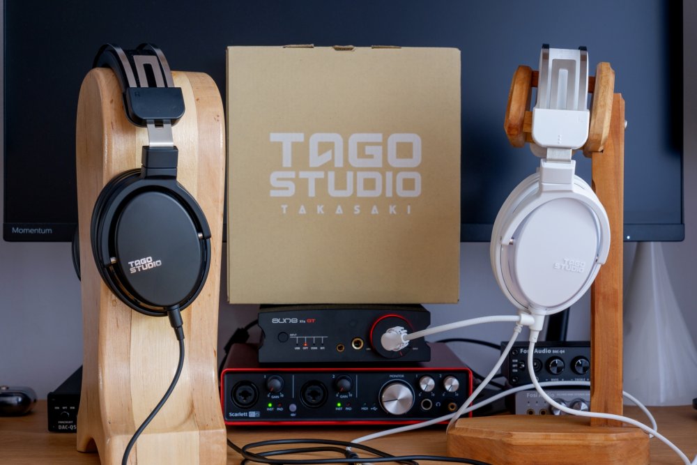 Tago Studio T3-03 i T3-03 (GAMING PKG), to przystępniejsze cenowo modele Tago Studio, przygotowane dla osób, które niekoniecznie chcą wydawać niemal 2400 złotych na flagowe T3-01. Kosztują one odpowiednio 1299 i 1399 złotych, a różni je między sobą kolor, gdzie wersja zwykła jest czarna, a gamingowa biała, wypukłe logo producenta na GAMING PKG oraz obecność przy nich dodatkowego kabla z mikrofonem. Poza tymi szczegółami, są to bliźniacze modele. Co od razu dobrze wróżyło, że nie dostaniemy słuchawek z „gamingowym” strojeniem, tylko solidne słuchawki, do których po prostu nie musimy dokładać osobno mikrofonu. Oba modele dostajemy w niedużych kartonowych pudełkach, na wieczkach których umieszczono duże logo producenta, a na jednej z bocznych ścianek naklejkę z identyfikacją modelu. Jednak to ostatnie nie jest aż tak potrzebne, gdyż wersja gamingowa ma biały napis Tago Studio, a zwykła czarny, więc pomylić je jest dość ciężko. W środku, oprócz samych słuchawek raczej standardowe wyposażenie, czyli materiałowy woreczek do przenoszenia naszych Tago i kable kolorystycznie dopasowane do słuchawek. W obu przypadkach mamy po dwa rodzaje okablowania: w T3-03 jeden o długości 1.2m, drugi 3.0m i wraz z nim przejściówkę do dużego jacka, natomiast w GAMING PKG jest również jeden zwykły kabelek 1.2m, natomiast drugi, również o długości 1.2m, ma zamontowany przy lewym wtyku mikrofon oraz nieco niżej suwak umożliwiający jego wyciszenie. Do tego ostatniego przewodu mamy też przejściówkę rozgałęziającą czteropinowy mini-jack na dwa trójpinowe – jeden do wyjścia słuchawkowego, drugi do wejścia na mikrofon. Wykonanie obu modeli T3-03 jest dobre, ale nie da się przeoczyć, że to przede wszystkim tworzywo sztuczne. Dobrej jakości, sztywne, ładnie wykończone, ale jednak tworzywo sztuczne, a w tej cenie konkurencja potrafi dawać np. w całości drewniane muszle. Na pochwałę zasługuje jednak pałąk, gdyż posiada on metalowy stelaż, a opaska utrzymująca konstrukcję na naszej głowie jest zapinana na klipsy i została wzmocniona paskiem skóry. Wypełnienie gąbką podbicia pałąka oraz otaczający ją materiał zapewniają komfort nawet przy dłuższych odsłuchach. Jest jednak jedna rzecz, która mało komu przypadnie do gustu, a mianowicie niezbyt głębokie pady z ekoskóry. Nie są co prawda tak spartańskie jak te z popularnych Audio-Technica ATH-M50X, czy tym bardziej Fostex T50RP, ale mimo że można w nich przesiedzieć dwie-trzy godziny, to po tym czasie zaczynają już zauważalnie grzać ucho i je uwierać. Choć aktualnie jesteśmy w okresie letnim, gdzie prawie wszystko grzeje, więc na bardziej miarodajne testy należałoby poczekać 2-3 miesiące. Niemniej komfort ogólny jest całkiem wysoki, waga słuchawek dobrze się rozkłada na pałąku, ucisk padów na uszy jest wyraźny i dobrze stabilizujący Tago na naszej głowie, ale jednocześnie nie przeszkadza nawet osobom noszącym okulary. Kable są bardzo standardowe, elastyczne, nie mikrofonują, a izolacja jest dość miła w dotyku. Wykorzystane wtyki, to 3.5mm, a więc łatwo zmienić kable na inne. Warto tu zauważyć, że są one wymienne między wszystkimi nausznymi modelami Tago Studio. Całkiem rozsądnie rozwiązano podpięcie kabla z mikrofonem – obudowy słuchawek przy wejściach mają wyprofilowane wypustki, w których blokuje się kabel, co uniemożliwia jego obracanie na boki, a więc i mikron nie zmienia swojego położenia bez naszej wyraźnej ingerencji. Sam mikrofon, to konstrukcja pojemnościowa elektretowa, oczywiście w trybie mono. I choć jest on pozbawiony dodatkowego oprogramowania czy zaawansowanych układów wspomagających, to sprawuje się bardzo dobrze. Dźwięk jest czysty i głośny, głos ma naturalną barwę, a dźwięki otoczenia są mocno odseparowane od tego, co słyszy nasz rozmówca. No dobrze, ale jak Tago Studio T3-03 grają? Otóż jest to brzmienie ocieplone, dość rozrywkowe, gdzie od początku nietrudno zauważyć podkreślony bas. I choć właśnie on pokazuje się nam jako pierwszy, to nie są to słuchawki typowo dla bassheadów. Przede wszystkim, podbicie dołu nie jest na tyle mocne by powodować wibracje całej głowy, ale również z powodu chyba najbardziej kontrowersyjnej cechy tych słuchawek, czyli trochę zmiękczonych dźwięków. Z tego względu nawet bardzo solidna dynamika nie daje nam faktycznie mocnego uderzenia, kolejne dźwięki rozchodzące się w niższych rejestrach są zaoblone i nieco za gładkie przy szybkiej, agresywnej muzyce. Za to bas potrafi przyjemnie mruczeć, co świetnie sprawdza się np. w transowych klimatach, zaskakująco dobrze wyciągając uderzenia na subbasie spod najbardziej dominującego midbasu. Ogólnie cec**je go dość duża uniwersalność, poza szybszym metalem czy speedcore po prostu miło masuje ucho. Nie jest naturalny, nawet nie stara się takiego udawać, ale jest to przyjemne czarownie, w przemyślany sposób koloryzujące dźwięki, przez co muzyka w dolnych rejestrach wydaje się otaczać słuchacza, nie będąc przy tym nachalną. Tony średnie, mocno wyrastają z ciepłej basowej podstawy, lekko odsuwają się od słuchacza, dając miejsce na rozwinięcie się wokali, wyraźnie wychodzących na pierwszy plan. Instrumenty są bardziej zwarte niż w dolnej części pasma, z barwą bliskiej rzeczywistej, ale ciągle mamy tu słodką nutę dodającą dźwiękom kolorytu. Na szczęście szybkość przetwornika nie pozwala wpaść T3-03 w sidła ubogiej dynamiki, która często towarzyszy podobnie zestrojonym słuchawkom. Tu ciągle coś się zmienia, ciągle coś się dzieje, po prostu nie ma czasu na nudę. I choć wydaje się, że takie rozrywkowe zestrojenie zaburzy brzmienie żywych instrumentów, to jest co najmniej bardzo dobrze. Nie ma nieprzyjemnych skoków na przebiegu pasma przenoszenia, a odejście od naturalności, a tym bardziej neut