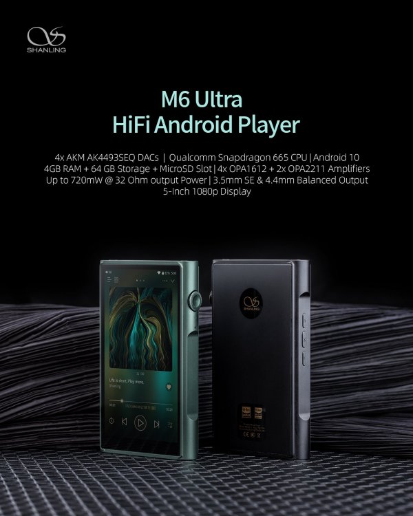 Shanling odpala kolejne fajerwerki, tym razem w postaci nowego DAPa. Shanling M6 Ultra ma być oficjalnie zapowiedziany jeszcze w najbliższy weekend na Chengdu Audio Show. Na chwilę obecną udostępniono jedno zdjęcie/render i ogólną specyfikację. - 4x AKM AK4493SEQ - CPU Snapdragon 665 - Android 10 - 4GB RAM + 64GB ROM + slot microSD - Wyjścia 3,5mm SE i 4,4mm balans - 5-calowy ekran FHD - moc wyjściowa max 720mW @ 32Ohm IMO jest petarda. Jak tylko pojawi się więcej info i realnych zdjęć, odświeżę wątek i dorzucę brakujące elementy specki, w tym cenę.