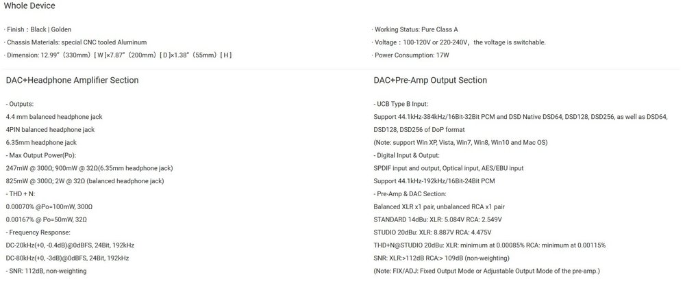 Umarł król, niech żyje król? Król combo dac/amp. Questyle CMA 600i vs. Questyle Twelve. Od razu do konkretów. Bluetooth 5Ghz i wejście 4,4 mm BAL !!! Sam fakt tych dwóch dodatkowych funkcjonalności przemawia znacząco na korzyść modelu “dwanaście”. Dodatkowo mamy przełączniki “gain control” na spodzie urządzenia. Zaleca się by były ustawione na low(wszystkie 4) przy podłączeniu IEM. Pstryczek BIAS na froncie, a co on robi cytuję: “which is like driving a super sport car, just imaging the car is set to "RACE" mode ( Sport Plus or Sport Response mode), and its engine is running at the ultra-high speed, and the rapid shift together with a strong grip is enough to conquer you and give you great satisfaction. “ Jeszcze dwa małe pstryczki na tylnym panelu przy wyjściach sygnału: “Fix-Adj”, “Studio 20dBu - Standard 14dBu”. To wszystko w tym samych rozmiarach co CMA 600i. Wisienką na torcie jest pilot który robi coś więcej poza kontrolą głośności. Pięć do zera dla “nowego” w ofercie Questyle. Widać że założeniem konstruktorów było, by 12 ma robić wszystko i być centralnym urządzeniem w torze audio-video, raczej biurkowym niż pod telewizorem czy na stoliku między kolumnami. Whole Device · Finish:Black | Golden · Chassis Materials: special CNC tooled Aluminum · Dimension: 12.99”(330mm)[ W ]×7.87”(200mm)[ D ]×1.38”(55mm)[ H ] · Working Status: Pure Class A · Voltage:100-120V or 220-240V,the voltage is switchable. · Power Consumption: 17W DAC+Headphone Amplifier Section - Outputs: 4.4 mm balanced headphone jack 4PIN balanced headphone jack 6.35mm headphone jack - Max Output Power(Po): 247mW @ 300Ω; 900mW @ 32Ω(6.35mm headphone jack) 825mW @ 300Ω; 2W @ 32Ω (balanced headphone jack) - THD + N: 0.00070% @Po=100mW, 300Ω 0.00167% @ Po=50mW, 32Ω - Frequency Response: DC-20kHz(+0, -0.4dB)@0dBFS, 24Bit, 192kHz DC-80kHz(+0, -3dB)@0dBFS, 24Bit, 192kHz - SNR: 112dB, non-weighting DAC+Pre-Amp Output Section - USB Type B Input: Support 44.1kHz-384kHz/16Bit-32Bit PCM and DSD Native DSD64, DSD128, DSD256, as well as DSD64, DSD128, DSD256 of DoP format (Note: support Win XP, Vista, Win7, Win8, Win10 and Mac OS) - Digital Input & Output: SPDIF input and output, Optical input, AES/EBU input Support 44.1kHz-192kHz/16Bit-24Bit PCM - Pre-Amp & DAC Section: Balanced XLR x1 pair, unbalanced RCA x1 pair STANDARD 14dBu: XLR: 5.084V RCA: 2.549V STUDIO 20dBu: XLR: 8.887V RCA: 4.475V THD+N@STUDIO 20dBu: XLR: minimum at 0.00085% RCA: minimum at 0.00115% SNR: XLR:>112dB RCA:> 109dB (non-weighting) (Note: FIX/ADJ: Fixed Output Mode or Adjustable Output Mode of the pre-amp.) Zatańczymy? Tyle różnic. Czy ten nokaut w pierwszej rundzie będzie miał znaczenie? Czy Twelve obroni się też dźwiękowo przed CMA600i? Broni się, ale to inny styl. Twelve to lżejsza waga, agresywniejsza, skupiona, walczy na małej przestrzeni. 600i to bardziej zrównoważony zawodnik. Jego ciosy ważą trochę więcej, dłużej są wykonywane, a porusza się po całym ringu. Już na wstępie dwunastak może się pochwalić lepszą kulturą pracy, nie brumi cichutko jak mój 600i. Poprawiono też inbalans przy bardzo niskiej głośności. W sumie skupię się na różnicach między opisywaną dwójką bo też dużo ich łączy. Twelve od razu wydaje się jaśniejszy, ostrzejszy i bardziej dynamiczny. Wszystko dlatego, że dźwięki krócej wybrzmiewają i są silniej akcentowane na pierwszy sygnał. Do tego scena jest węższa niż w CMA600i. Daje to nam więcej informacji i lepszy wgląd w nagranie. Dodatkowo mamy bliższe wokale, szczególnie wyczułem to w męskich partiach. Holografia jest bardziej czytelna. Tracimy jednak trochę przestrzeni i powietrza, efekty 3D na scenie. Dwunasta brzmi silną kreską ale już bez tak mocnego wypełnienia. Sześć-setka gra za to równiej, luźniej i barwniej, z delikatnie lepszym wypełnieniem. Wybrzmiewanie dźwięków też jest dłuższe. Niczego nie narzuca, ale nie ma tak rzeczowych informacji z nagrania. Dla jednych to nuda. Daft Punk - Human After All przyjemniej się słuchało na dwunastce, a w utworze Robot Rock kiedy wchodzi wokal, był bardziej oczywisty niż na 600i, gdzie trzeba było przenieść uwagę na ten aspekt. Za to wszędzie tam gdzie liczy się przestrzeń i barwa, wracałem myślami do sześć-setki. Bas prowadzą tak samo fantastycznie. Najnowszy sprzęt z oferty Questyle nie podbił go, a akcent na pierwszy sygnał pomaga w niektórych gatunkach. Czuć ten impakt. Za to 600i troszkę dłużej będzie go wygrywał, z lepszą masą w środku i dłuższym finiszem. Słychać że sprzęty wyszły spod ręki Questyle, ale zostały inaczej zestrojone. Mocy zdaje się mają po równo, grają czysto i spójnie. Dość muzykalnie. Takie połączenie obecnej szkoły strojenia urządzeń, z japońską precyzją i delikatną tęsknotom za starym analogowym, ciepłym graniem. Takich jak nas dwóch to nie ma ani jednego, powiedział trzeci. Domyślam się czemu dwunastka na ostatnim AVS wywarła tak pozytywne wrażenie. W takich gwarnych warunkach jej sygnatura bardzo pomagała słuchawką. Questyle CMA Twelve to pazur i wyraźniejsza informacja. CMA 600i to dojrzałość i lepsza przestrzenność. Trzeci z braci CMA 400i za to stawia na zabawę. Reszta aspektów brzmienia, opisywanej dziś dwójki, to ta sama klasa. Fajnie, że Questyle ma/miał w ofercie trzy wyróżniające się Combo DAC/AMP, a każde gra w inny charakterze. PS. Wajcha BIAS - ja nie usłyszałem żadnej różnicy, bez względu w jakiej pozycji była ustawiona.