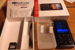 No to po wielkich bojach z paczką, w końcu dotarł nowy grajek. Na razie na sucho bo dopiero zacząłem macać Zaczne od fotek: Pierwsze co rzuca się w oczy to zupełnie inny materiał obudowy. Metal czarny jak smoła, nie taki szarawy jak w X2 - szczotkowane aluminium. Nie jest on gładki a taki jakby lekko karbowany. Z przodu trochę mniej, z tyłu bardziej. Rewelacyjnie leży w dłoni. Wyświetlacz większy niż w X2, czytelniejszy z większą ilością funkcji na ekranie. Przyciski sprawiają zupełnie inne wrażenie w porównaniu do tych znanych z X2. Wyglądają również na metalowe (aluminium) nic nie lata, działają precyzyjnie i dokładnie. Z prawej strony miejsce na dwie karty, na dzień dzisiejszy maks 128GB, zatem chyba zadowoli to najbardziej wymagających użytkowników. Wyżej dwa przyciski do sterowania głośnością. Lewa strona to manualny przełącznik blokady, jak dla mnie super, nie ma do czego się przyczepić. Menu, hmm, widać, że to egzemplarz testowy bo dwie literówki znalazłem zatem podejrzewam, że będzie poprawka lada dzień do kilku rzeczy. Do poruszania się po menu niestety trzeba będzie się przyzwyczaić. Koledzy z azjii nie mogą pojąć, że europejczycy używają do poruszania się po menu w prawo przycisku z prawej strony :] U nich w prawo to dolny przycisk, w lewo górny lol Specyfikacja już zapewne znana więc kopiować nie zamierzam bo zabieram się do słuchania