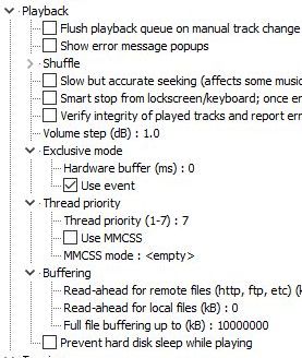 markp Posted March 14, 2020 Report Posted March 14, 2020 7 godzin temu, majkel napisał: 1. W sekcji Playback\Output ściągamy i instalujemy najnowszy (z 2012) plug-in WASAPI Najnowszy plug-in WASAPI jest z 2017 r. https://www.foobar2000.org/components/view/foo_out_wasapi 7 godzin temu, majkel napisał: a dla event 0 (słownie: zero). Pomysł bufora dla event jest skądinąd co najmniej dziwny, ale to jak ktoś chce, to podyskutujemy później. Jak wpiszę wartość 0, to Foobar przestaje odtwarzać. Minimalna wartość przy której Foobar gra wynosi 4. Quote
